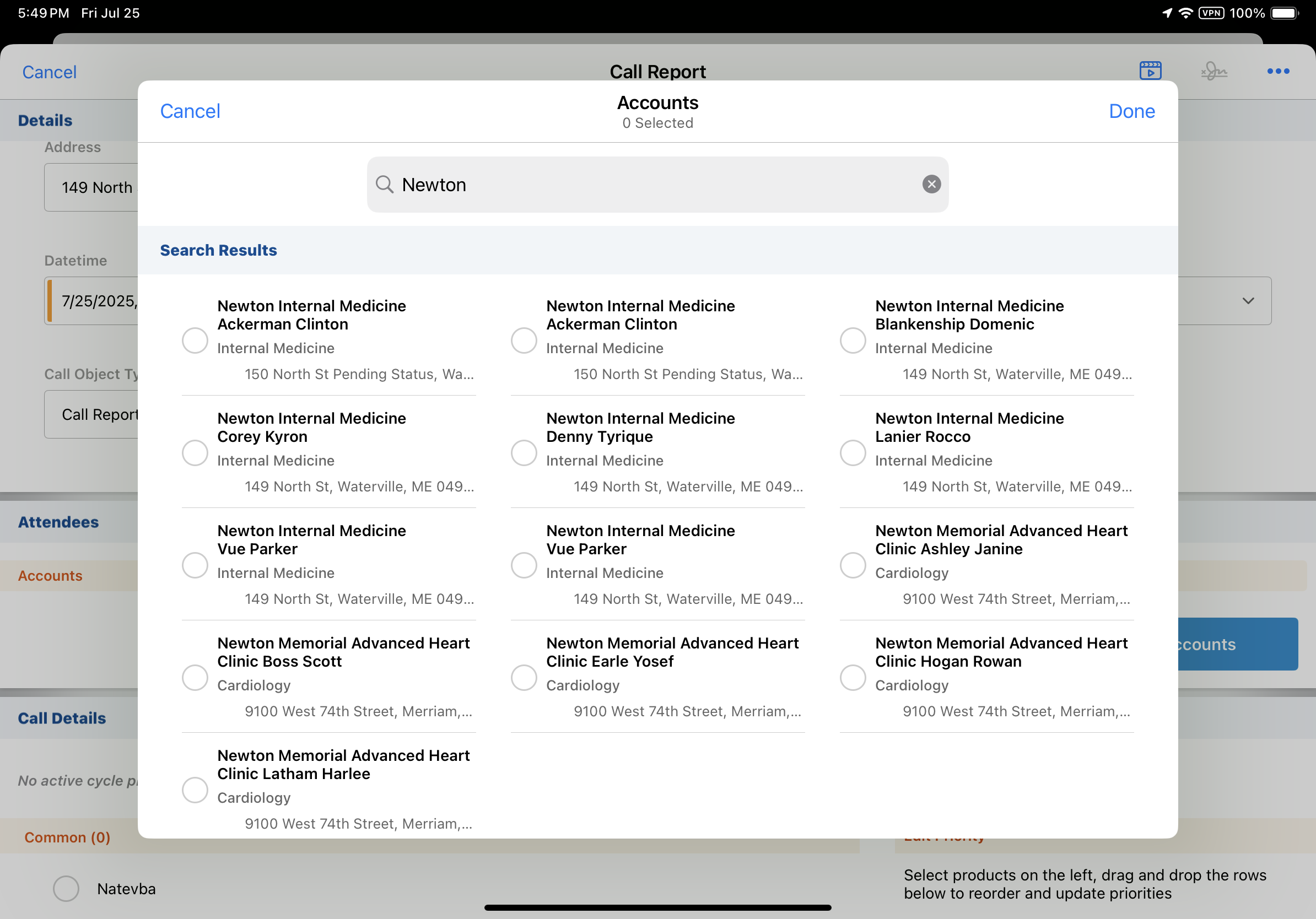 一部の組織では、個々の専門職(HCP)と彼らが連携する施設(HCO)とのつながりは、コールレポートにおける重要な要素です。このような実装では、コールレポートは、個人と場所の両方にリンクされ、実際のやり取りを正確に反映できるようにする必要があります。これを支援するために、コールレポートは、コールの入力地点とHCPとHCO間の子/親関係に基づいて、適切な人物と場所を自動的に割り当てます。さらに、コールレポートの検索機能は、関連する子アカウントを優先し、ユーザーが正しいレコードを見つけて関連付けやすくします。